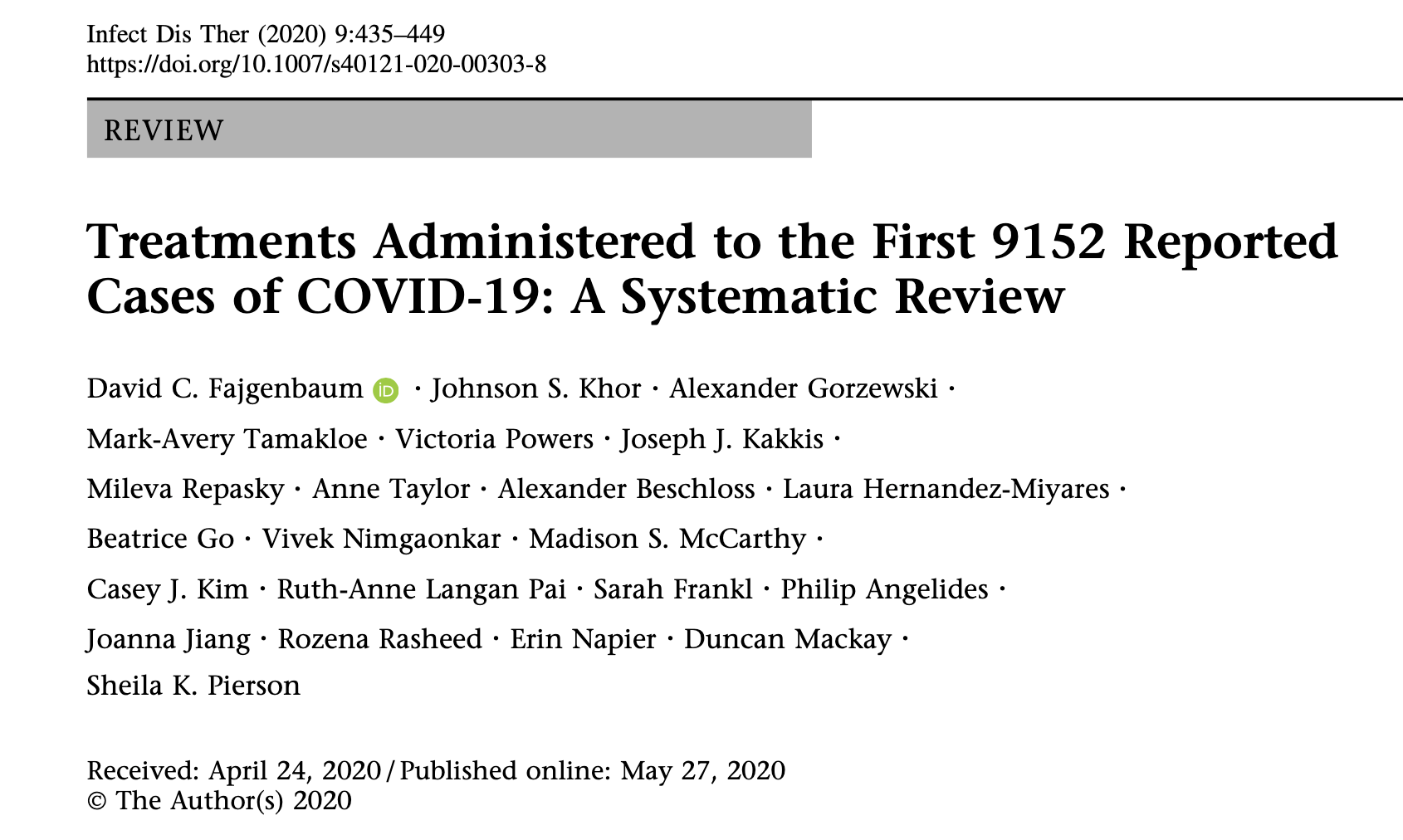 With doctors and researchers around the world searching for effective treatments for COVID-19, many drugs approved to treat other diseases are being used in hopes that they’ll be effective against the virus, a use that’s known as “off-label.” A volunteer army that Dr. David Fajgenbaum assembled has catalogued every use documented in medical literature so far and found physicians have reported on the use of more than 100 different off-label and experimental treatments. The effort, called COvid19 Registry of Off-label & New Agents (CORONA), is an attempt to take an inventory of what’s being used where, as well as to spot any evidence of treatments that warrant further investigation in a randomized clinical trial. The findings were published in Infectious Diseases and Therapy on May 27.